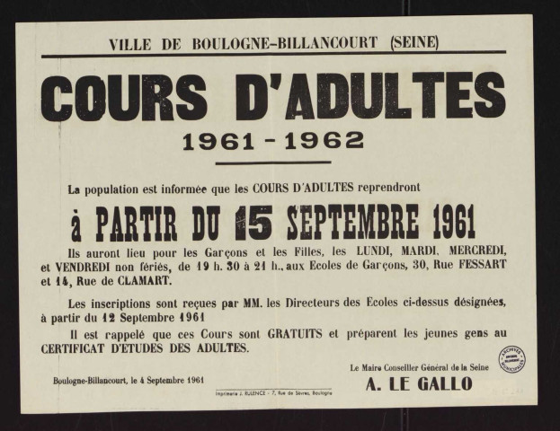 LE GALLO (Alphonse) [ Auteur ] ; Imprimerie J. Rulence, Boulogne-Billancourt, 7 rue de Sèvres