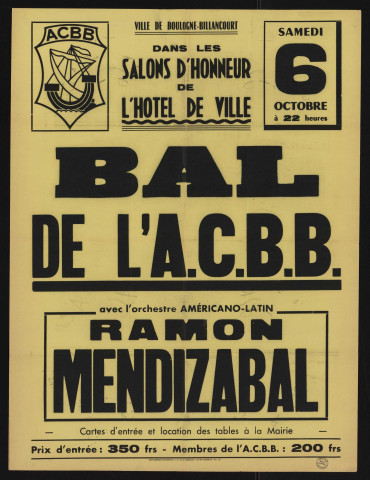 Bal de l'ACBB avec l'orchestre américano-latin Ramon Mendizabal,