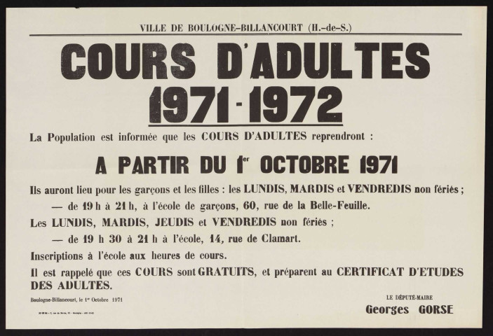 Gorse (Georges) [ Auteur ] ; Imprimerie moderne, Livry-Gargan, 8 place de la Libération