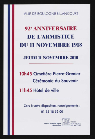 92e anniversaire de l'armistice du 11 novembre 1918,