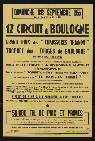 12e circuit de Boulogne : grand prix des "Chaussures Trianon", trophée des Forges de Boulogne,