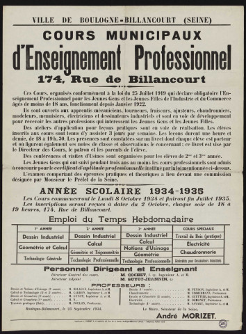 Cours municipaux d'enseignement professionnel 174 rue de Billancourt,