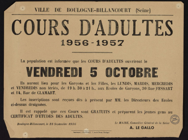 LE GALLO (Alphonse) [ Auteur ] ; Imprimerie J. Rulence, Boulogne-Billancourt, 7 rue de Sèvres