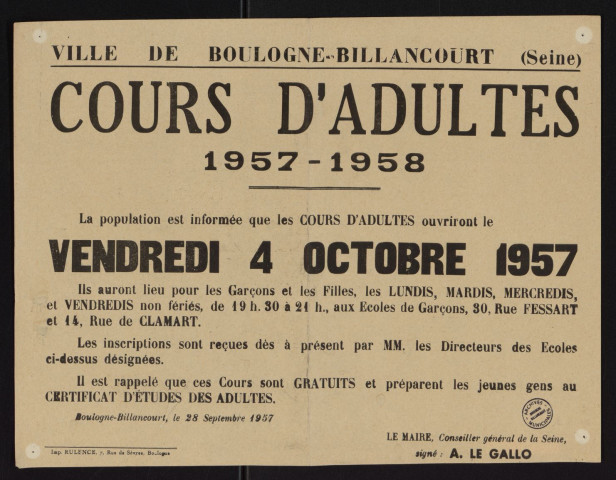 LE GALLO (Alphonse) [ Auteur ] ; Imprimerie J. Rulence, Boulogne-Billancourt, 7 rue de Sèvres