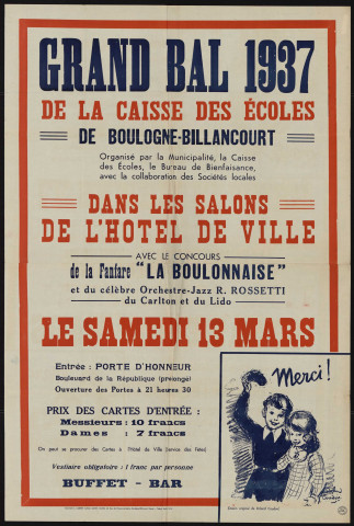 Grand bal 1937 de la caisse des écoles , Dessin de Roland Coudon.